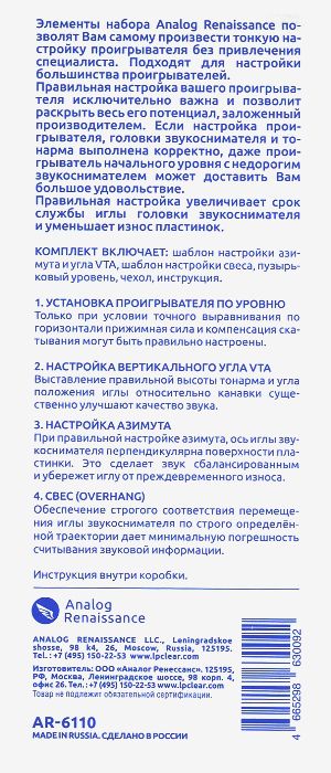 КОМПЛЕКТ ДЛЯ НАСТРОЙКИ ТОНАРМА И ГОЛОВКИ ЗВУКОСНИМАТЕЛЯ ANALOG RENAISSANCE
