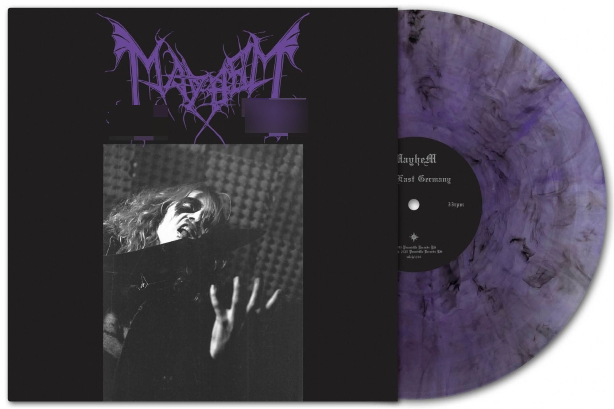 Лимитированное издание, посвященное 35-летию, на "мраморном" виниле (прозрачный черно-фиолетовый цвет). Mayhem - Live in Leipzig .