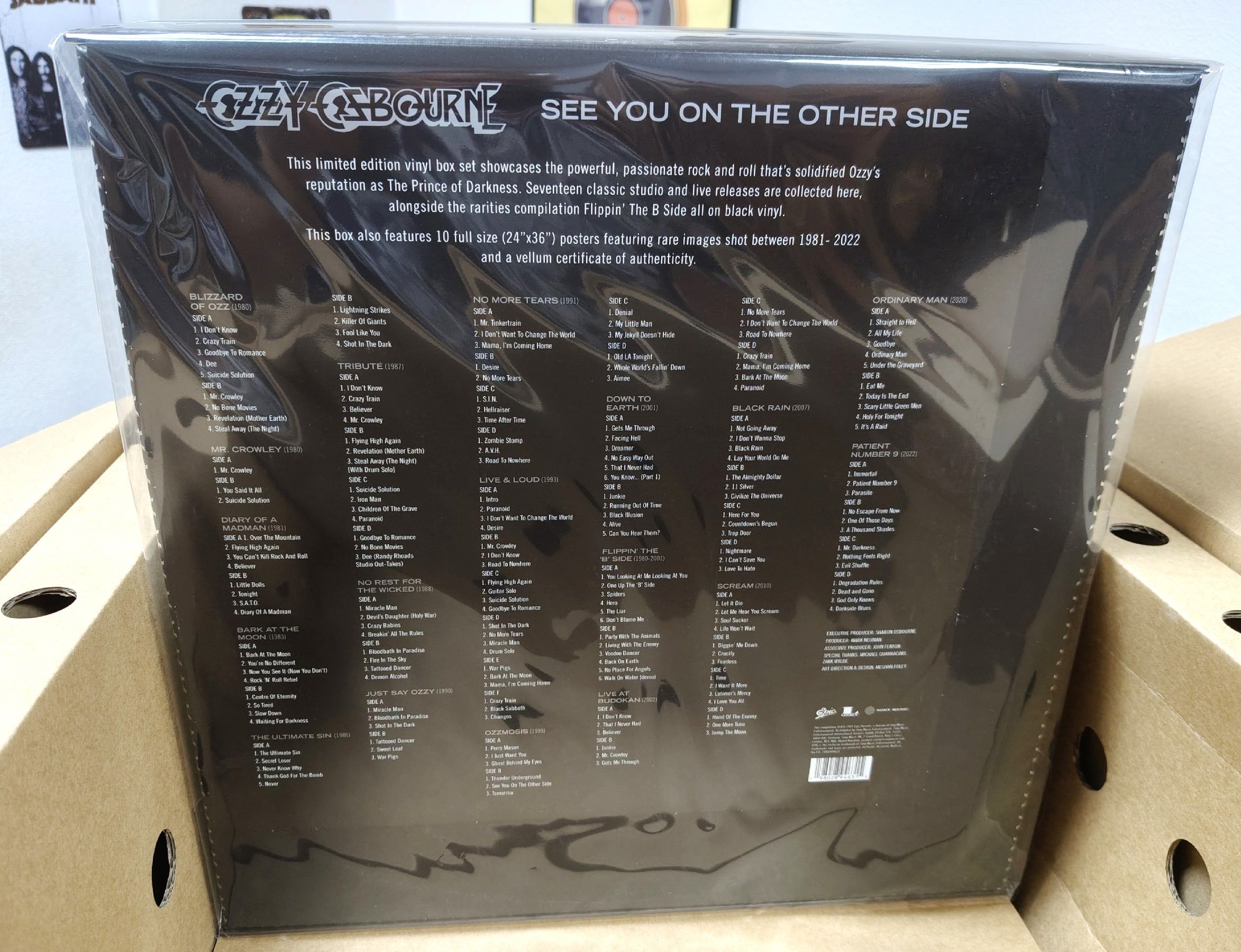 Полное виниловое издание оригинального сольного материала Оззи Осборна в ограниченной черной виниловой коробке. Бокс-сет выпущен ограниченным тиражом и будет содержать в общей сложности 18 альбомов, включая сборник раритетов Flippin' The B-Side, а также его последние релизы Ordinary Man и Patient Number 9. Это супер-люксовый бокс-сет.