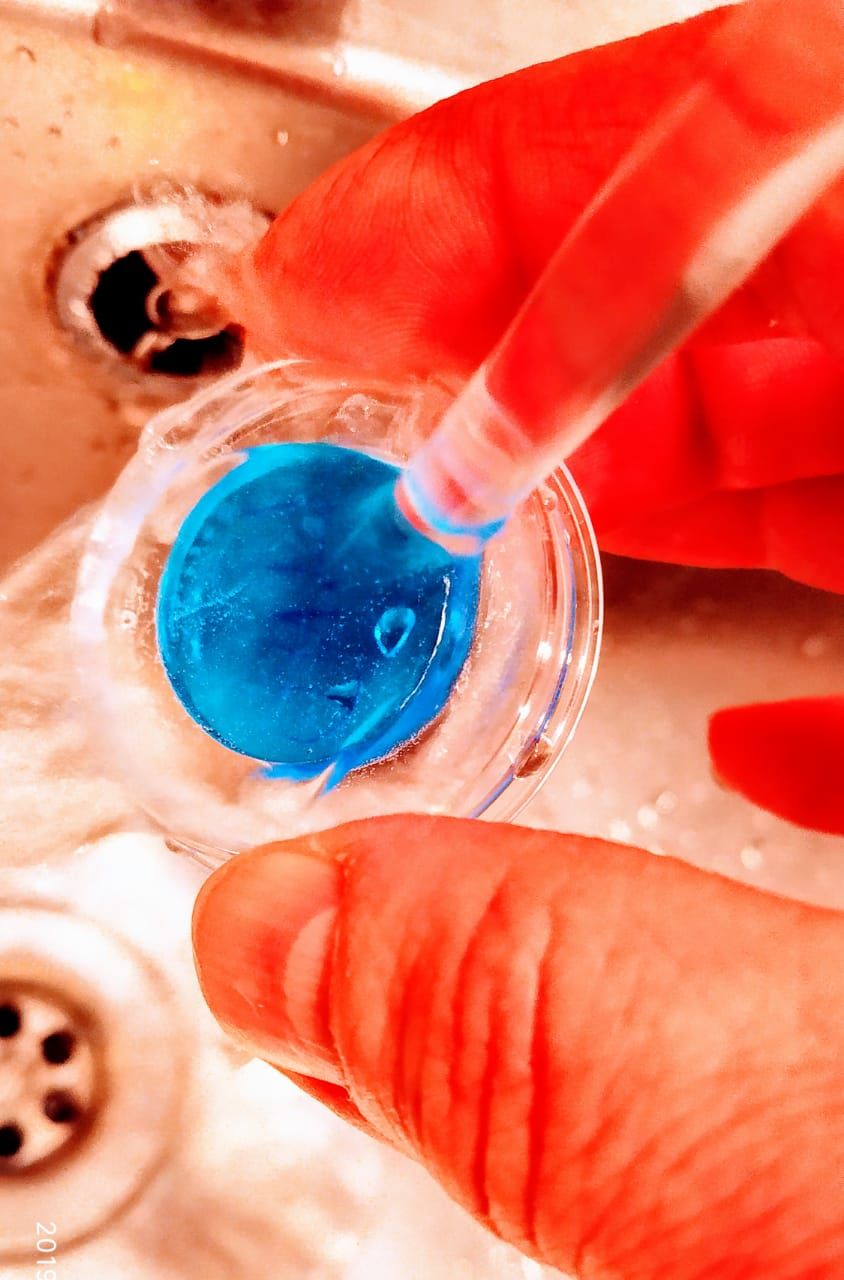 Обязательно снять защитную пленку с геля ! После этого плавно погрузить 2-3 раза иглу в гель.